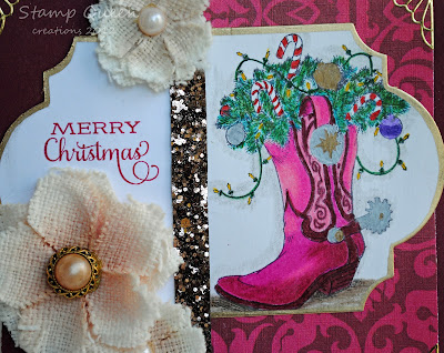How FUN!!!!!!! LOVE the use of the dies in the center! LOVE all that sparkle too!!!!!!!!! AND I agree with Stacy---that is some girlie girl boot! :)