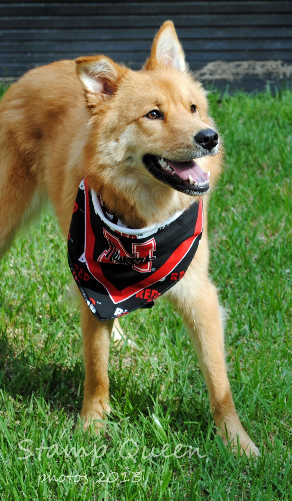 Well I got out early for my morning walk - nice and cool, love it!!!! Miss Kyna loves it too - she is all energy!!! But she looks so cute with her new Husker bandana!!!! (see end of post for pic)